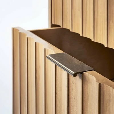 Combine style and functionality in your space with this Thousand Oaks Wood Scalloped End Table with Drawers from Threshold™ designed with Studio McGee. Made with a wooden frame, this rectangle end table has a scalloped front for an attractive look. The wooden top offers ample space to display your floral arrangements, photos and more while the built-in drawers offer enough space to keep your items organized.