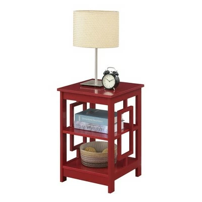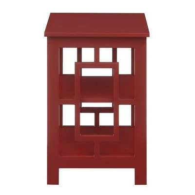 Reinvent your living room with the Town Square End Table with Shelves by Breighton Home. This simple yet eye-catching end table showcases an Asian-inspired design with its unique square side panels. Two additional shelves provide convenient storage or display space to meet one’s entertainment and storage needs. This carefully crafted unit is constructed from MDF and finished with non-lead-based paint for safe, long-term use. Coordinate this end table with additional pieces from the Town Square Collection by Breighton Home, each sold separately.