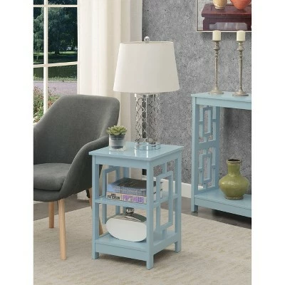 Reinvent your living room with the Town Square End Table with Shelves by Breighton Home. This simple yet eye-catching end table showcases an Asian-inspired design with its unique square side panels. Two additional shelves provide convenient storage or display space to meet one’s entertainment and storage needs. This carefully crafted unit is constructed from MDF and finished with non-lead-based paint for safe, long-term use. Coordinate this end table with additional pieces from the Town Square Collection by Breighton Home, each sold separately.