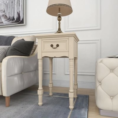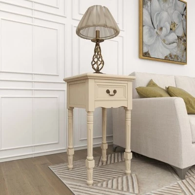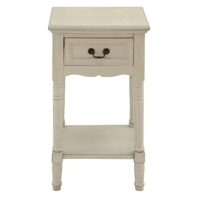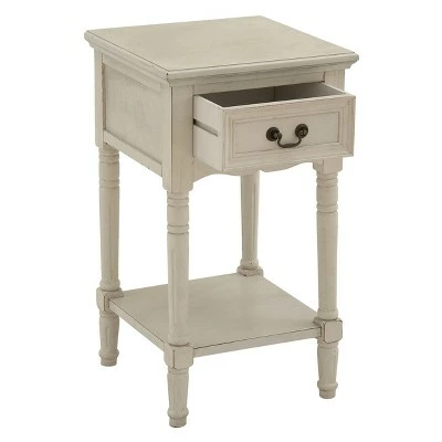 Set this table next to your side chair or sofa for convenient access to personal items. Bring a finishing touch to your home with an inviting appeal with this beautifully crafted accent table. A compact friendly table providing you with additional storage space any where in your home. This side table features 1 pull-out drawer. Suitable for indoor use only. Some assembly required. Maximum weight limit is 100 lbs. This accent table features 1 lower shelf. Traditional theme.