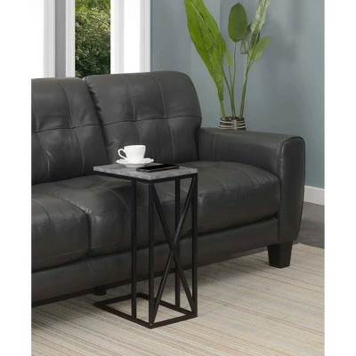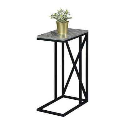 Give your space a makeover with the Tucson C End Table. This unique end table is just as functional as it is durable. The C shape offers much versatility and allows you to use it as a standard end or chairside table. When in need of easily accessible surface space, slide this table under the couch to accommodate anything from snacks to a laptop without the hassle. Crafted with a powder-coated metal frame and a particleboard tabletop to stand the test of time. This modern take on a traditional piece is available in multiple finishes to easily complement any new or existing decor. Complete your living space with coordinating pieces from the Tucson Collection by Breighton Home, each sold separately.