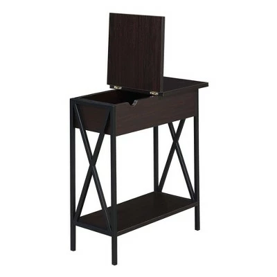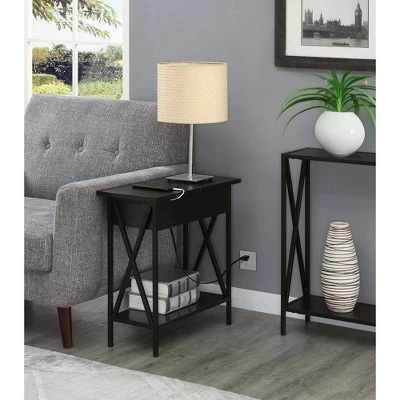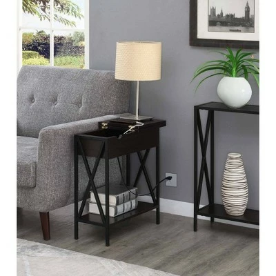Tucson Flip Top End Table with Charging Station and Shelf Espresso/Black – Breighton Home