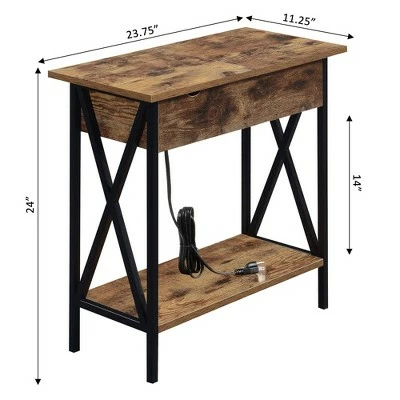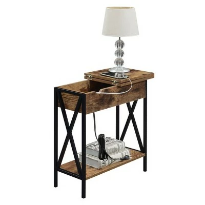 Tucson Flip Top End Table with Charging Station – Breighton Home Barnwood/black
