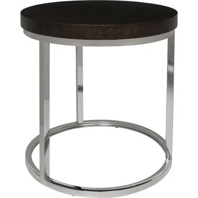 An iconic European modern shape gets a 21st century update in the Turner round end table. With a contemporary pairing of wood atop a polished stainless steel base, Turner is an airy, smart and subtle addition to the living room area. This eye grabbing accent table has a cylinder shape that is as uncommon as it is beautiful. This end table is able to support up to fifty pounds. The Turner round end table is the perfect addition for Contemporary, Modern or Transitional style rooms.
