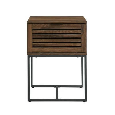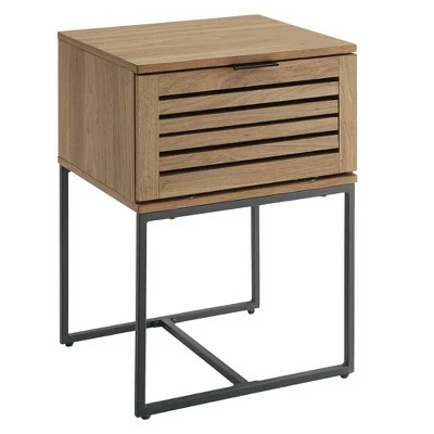Bring eclectic fashion to your bedroom with Saracina Home’s Simon Boho Slat Door Nightstand. Use its top surface to display all your bedside essentials, from lamps to speakers. Stow away extra phone chargers, notebooks, and knick-knacks within the slatted-door closed storage cubby. The boxy metal legs and peek-a-boo door make for a poised, modern boho end table that will enhance its surroundings.