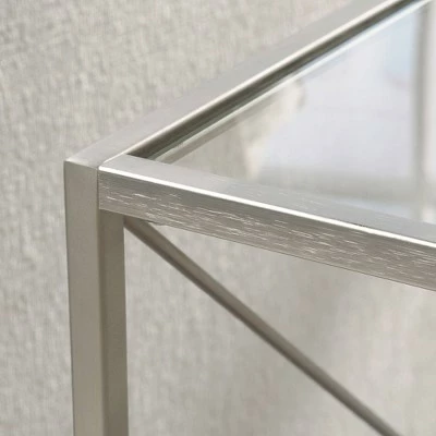 - Metal frame features brushed nickel finish.Crossbars for stability.