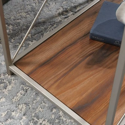 No couch is complete without the perfect side table. Find a place for all your couch-side needs while adding a touch beautiful style and design with this side table from the Vista Key collection. This stunning end table features a safety-tempered glass top that offers the ideal amount of room for items like an accent lamp, decorative plants, coasters and a refreshing ice-cold beverage. This side table also includes a lower shelf with a reversible bottom that features a Peal Oak or Blaze Acacia finish. Its sturdy metal frame features a brushed nickel finish that is sure to stand out in your home. This end table also features crossbars for stability that add an extra touch of detail. This couch-side table is finished on all sides for versatile placement throughout any room in your home – the living room, your office, or even the dining room. Finished in Pearl Oak or Blaze Acacia, this stunning side table is just what your home is missing.