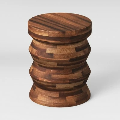 Bring just a touch of modern charm to your living room, bedroom or home office with this brown zigzag drum stool from Threshold™. The sculptural drum shape rounds off the modern look, while the multicolor wood finish adds some dimension to the smooth finish. A great accent piece to sit beside your coffee table for a place to rest drinks on, or make it the perfect finishing touch to your bedroom or home office corner alongside an accent chair and bold, modern floor lamp.